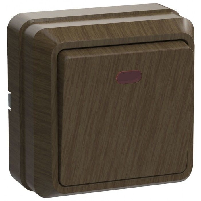 Выключатель 1-клавишный для открытой установки с индикацией ВС20-1-1-ОД 10А ОКТАВА дуб IEK