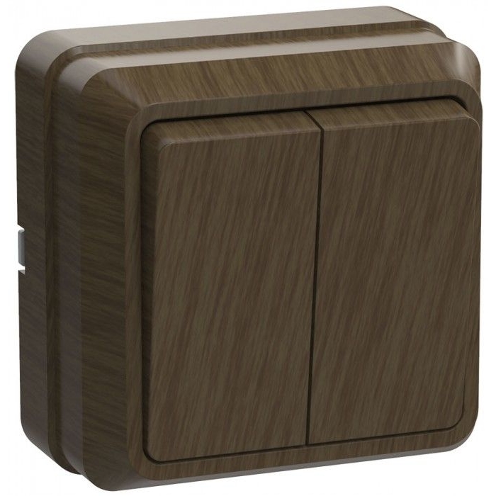 Выключатель 2-клавишный для открытой установки ВС20-2-0-ОД 10А ОКТАВА дуб IEK