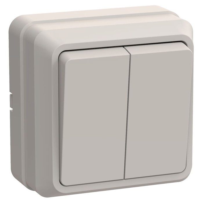 Выключатель 2-клавишный для открытой установки ВС20-2-0-ОКм 10А ОКТАВА кремовый IEK