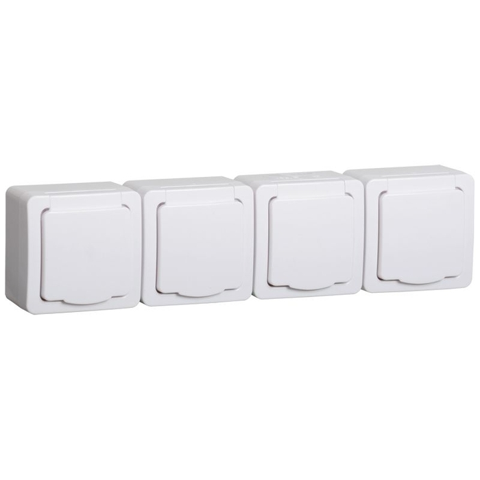 Розетка 4-местная для открытой установки РСб24-3-ГПБб с заземляющим контактом IP54 ГЕРМЕС PLUS белый IEK