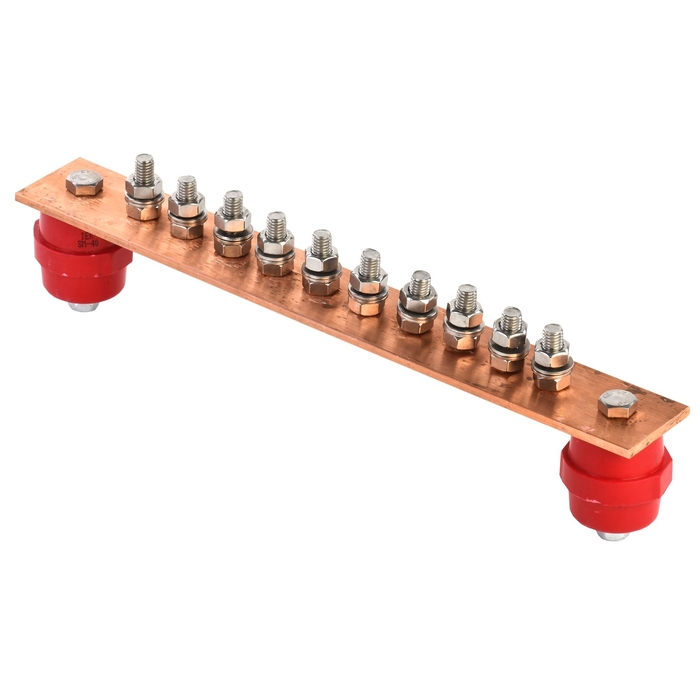 Шина заземляющая главная 285х40х4мм на 10 подключений медь IEK