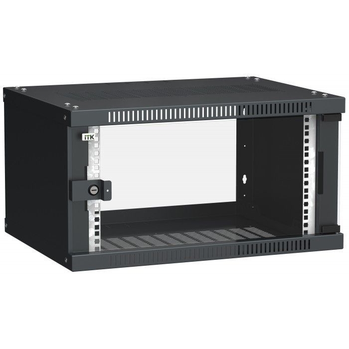 ITK Шкаф настенный LINEA WE 6U 600х450мм дверь стекло черный
