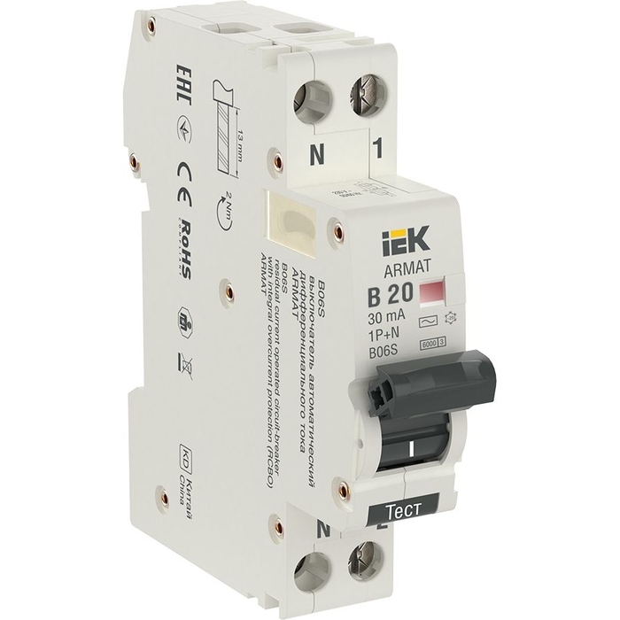ARMAT Автоматический выключатель дифференциального тока B06S 1P+NP B20 30мА тип AC (18мм) IEK