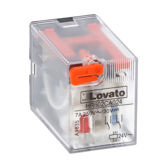 Промышленное реле. Электромеханическое, светодиодная индикация, ручное управление, управляющее напряжение 24В (AC), контакты 2CO, 7А. Производитель - Lovato Electric, серия HR60