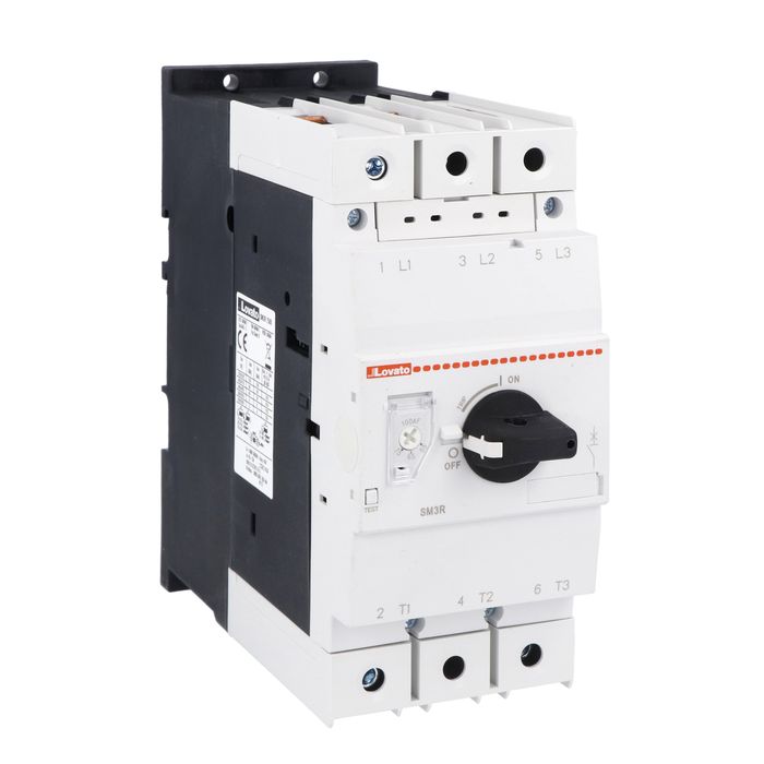 Автоматический выключатель защиты двигателя SM3R 75А, 3 полюса, откл. способность 50кА, диапазон уставки 55-75А. Управление - поворотная рукоятка. Производитель - Lovato Electric. Серия - SM3