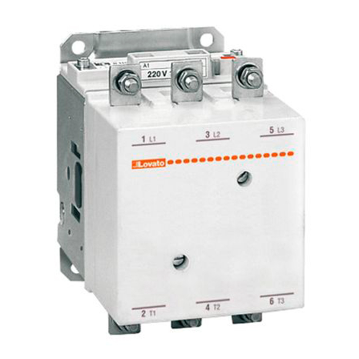 Трехполюсный контактор для управления двигателем, индуктивными нагрузками (AC-3), 265А / 140,0кВт (400В), доп. контакты - отсутствуют, управляющее напряжение 110-125В (АС/DC), категория применения АС-3. Контактные зажимы – болтовое соединение. Производитель - Lovato Electric, серия B.