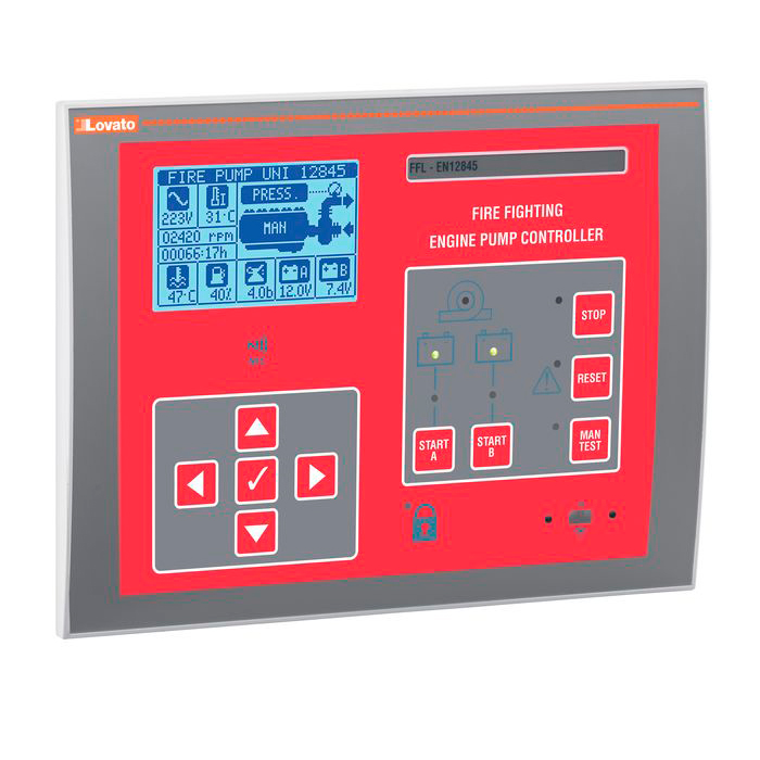 Контроллер управления пожарных мотопомп. Напряжение управления 12/24В (DС), RS485. Производитель - Lovato Electric, серия FFL7