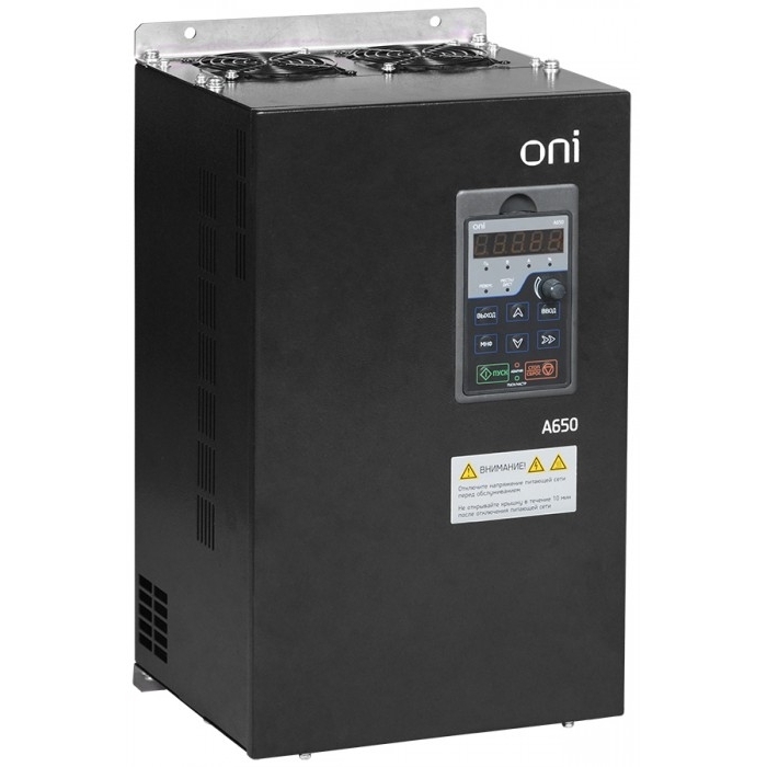 Преобразователь частоты ONI A650, стандартная перегрузка, мощность 45кВт входное напряжение 3х380, номинальный ток 91А, исполнение корпуса IP20, без тормозного модуля, без встроенного фильтра ЭМС, панель управления встроена, сетевой протокол RS-485