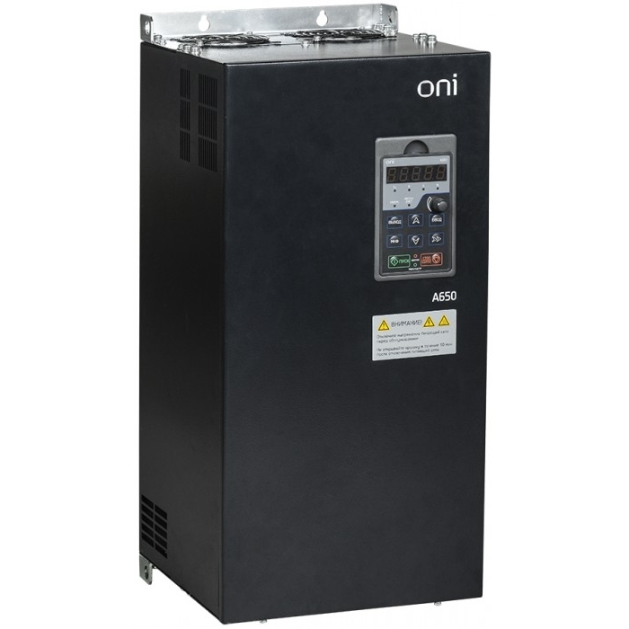 Преобразователь частоты ONI A650, стандартная перегрузка, мощность 90кВт входное напряжение 3х380, номинальный ток 176А, исполнение корпуса IP20, без тормозного модуля, без встроенного фильтра ЭМС, панель управления встроена, сетевой протокол RS-485