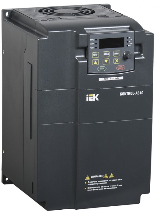 Преобразователь частоты IEK CONTROL-A310, высокая/стандартная перегрузка, мощность 7,5/11кВт входное напряжение 3х380, номинальный ток 17/25А, исполнение корпуса IP20, без тормозного модуля, без встроенного фильтра ЭМС, панель управления встроена, сетевой протокол RS-485