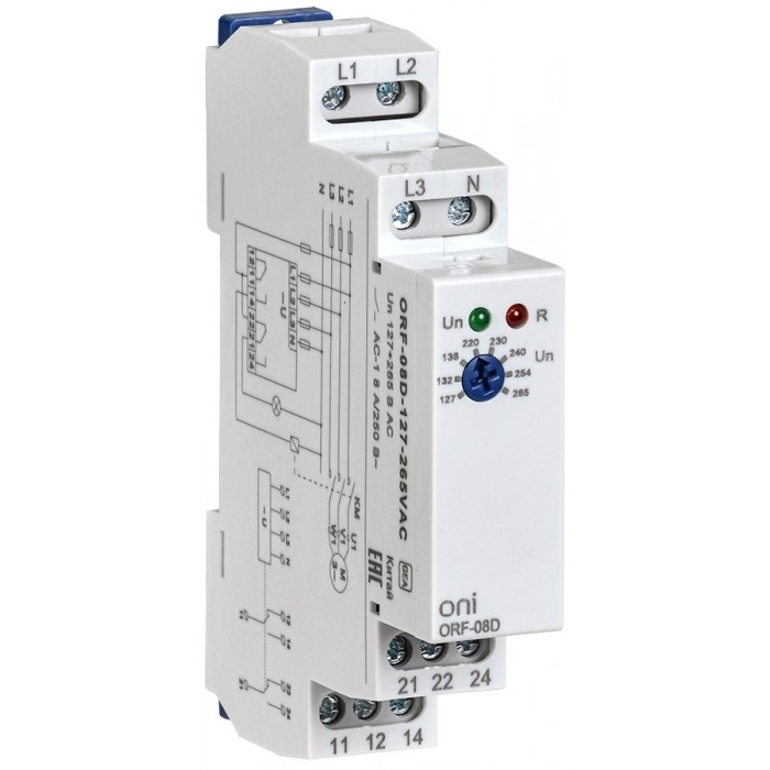 Реле контроля фаз ORF-08D 3 фазы 2 контакта 127-265В AC с контролем нейтрали ONI