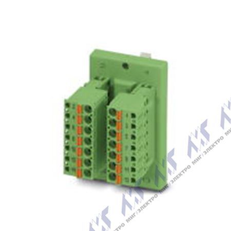 Проходной модуль VARIOFACE реализует соединение 1:1 между вставными пружинными клеммами Push-in и штыревой колодкой IDC / FLK (2,54 мм, количество полюсов 14).